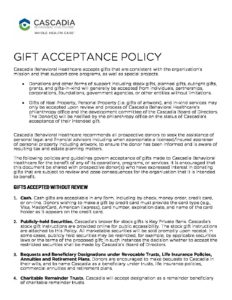 GIFT ACCEPTANCE POLICY Cascadia Behavioral Healthcare